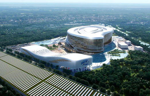 本项目位于河北漳河经济开发区中华慈大街南段东侧,占地870亩,总建筑面积50万平方米。该项目采用最新的太阳能综合利用技术,运用聚光太阳能供热系统,突破性的将太阳能光热技术大规模应用于文化、旅游、体育、酒店服务产业,建设技术国际领先、规模国内最大的四季恒温室内亲水度假园区,力求充分发挥光热技术的经济效益及社会效益。